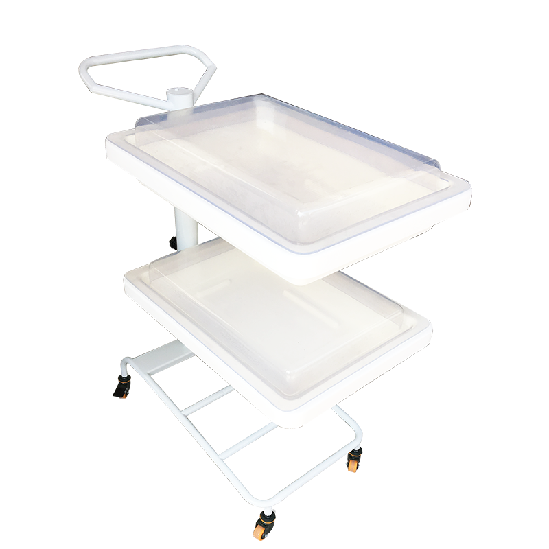 1由一次壓模成型的高分子托盤、全鋼烤漆車體、靜音腳輪組成,具有耐腐蝕、不沾水、車行順暢、取放方便等優點;